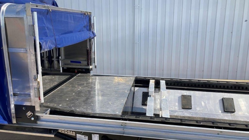 This 48-foot coil hauler is a true testament to our precision engineering. What makes it unique is the specialized open well between the main beams, a feature meticulously crafted to perfectly secure and transport coils without shifting. To ensure maximum protection for your cargo, the well is lined with durable rubber matting, which prevents damage during transit. The custom tarp system is also integrated to provide superior weather protection, keeping your valuable coils safe from the elements on the road.